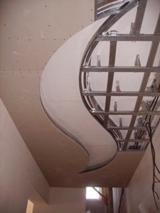 первого слоя монтаж потолка. После того, как гипсокартон закреплен к подвесному потолку, необходимо